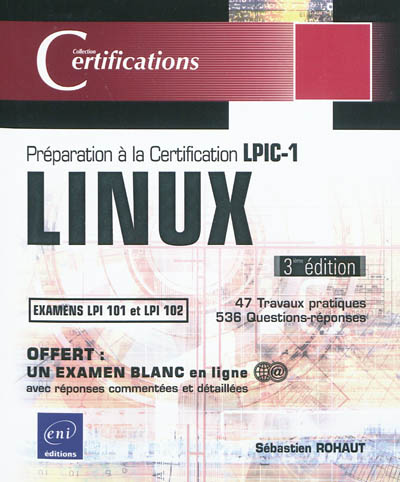 Linux : préparation à la certification LPIC-1, examens LPI 101 et LPI 102 : 47 travaux pratiques, 544 questions-réponses
