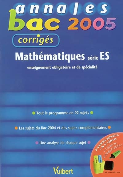 Mathématiques série ES enseignement obligatoire et de spécialité : tout le programme en 92 sujets, les sujets du bac 2004 et des sujets complémentaires, une analyse de chaque sujet