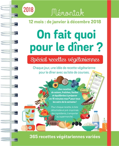 On fait quoi pour le dîner ? spécial recettes végétariennes : chaque jour, une idée de recette végétarienne pour le dîner avec sa liste de course : 12 mois, de janvier à décembre 2018