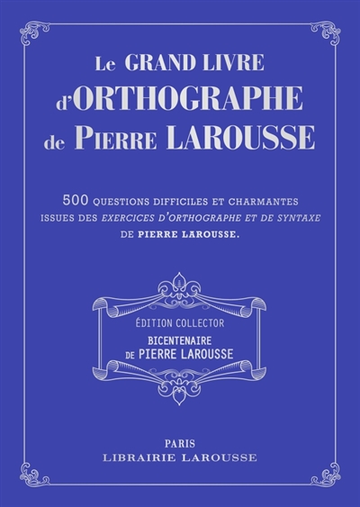 Le grand livre d'orthographe de Pierre Larousse : 500 questions difficiles et charmantes issues des Exercices d'orthographe et de syntaxe de Pierre Larousse