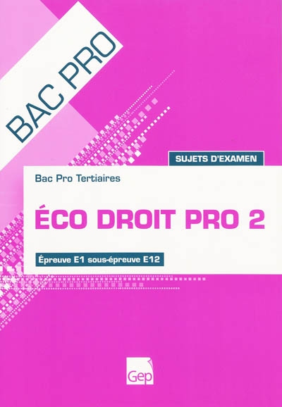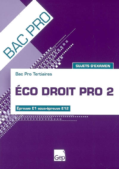 Eco droit pro 2, bac pro tertiaires : épreuve E1 sous épreuve E12, sujets d'examen
