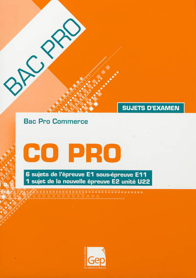 Co pro : bac pro commerce, sujets d'examen : 6 sujets de l'épreuve E1 sous-épreuve E11, 1 sujet de la nouvelle épreuve E2 unité U22