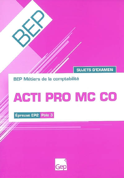 Acti pro MC CO : BEP métiers de la comptabilité, épreuve EP2, pôle 3 : sujets d'examen