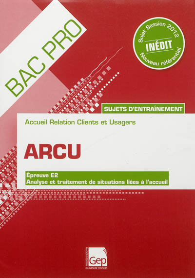ARCU, accueil relation clients et usagers : épreuve E2, analyse et traitement de situations liées à l'accueil : sujets d'entraînement session 2012