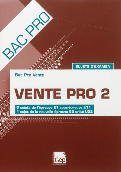Vente pro 2 : bac pro vente, sujets d'examen : 6 sujets de l'épreuve E1 sous-épreuve E11, 1 sujet de la nouvelle épreuve E2 unité U22