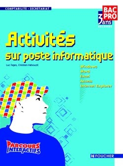 Activités sur poste informatique, seconde bac pro 3 ans, 2de métiers des services administratifs : Windows, Excel, Word, Access, Internet Explorer : livre de l'élève avec CD-ROM
