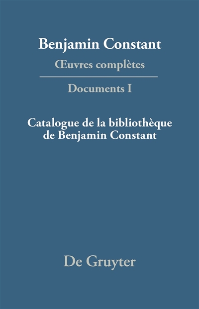 Oeuvres complètes. Documents. Vol. 1. Catalogue de la bibliothèque de Benjamin Constant