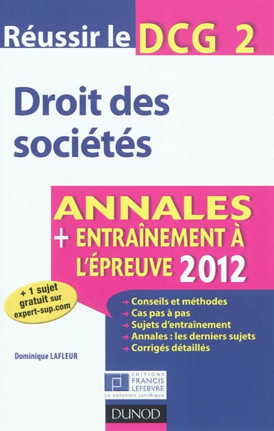 Droit des sociétés : réussir le DCG 2 : annales, entraînement à l'épreuve 2012