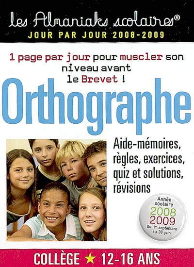 Orthographe collège, 12-16 ans : aide-mémoires, règles, exercices, quiz et solutions, révisions : année scolaire 2008-2009, du 1er septembre au 30 juin