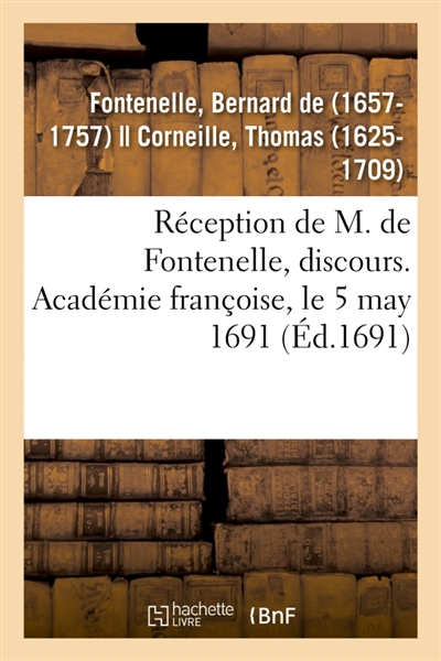 Réception de M. de Fontenelle, discours. Académie françoise, le 5 may 1691 : avec plusieurs pièces de poësie qui y ont été lues le même jour
