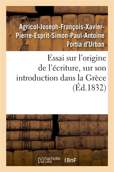Essai sur l'origine de l'écriture, sur son introduction dans la Grèce : et son usage jusqu'au temps d'Homère
