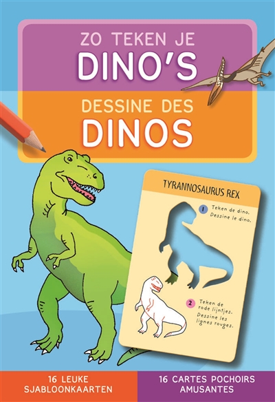 Zo teken je dino's : 16 leuke sjabloonkaarten. Dessine des dinos : 16 cartes pochoirs amusantes