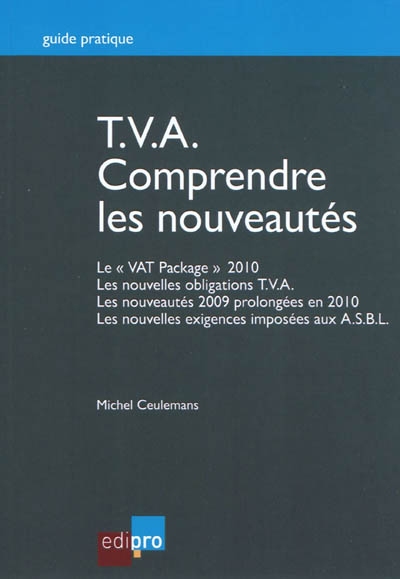 TVA : comprendre les nouveautés : le "VAT Package" 2010, les nouvelles obligations TVA, les nouveautés 2009 prolongées en 2010, les nouvelles exigences imposées aux ASBL