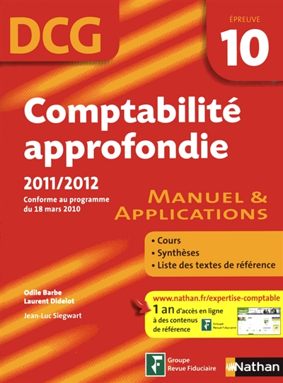 Comptabilité approfondie, DCG épreuve 10 : manuel & applications