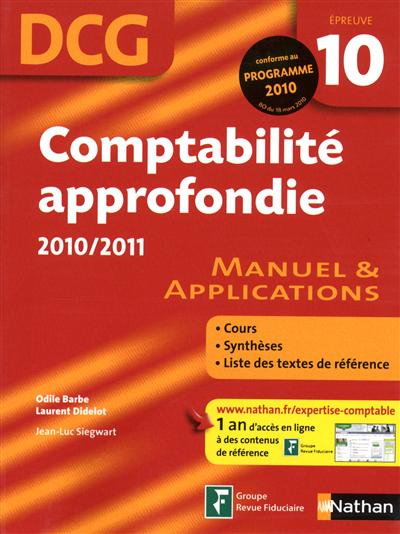 Comptabilité approfondie, DCG épreuve 10 : manuel et applications : 2010-2011