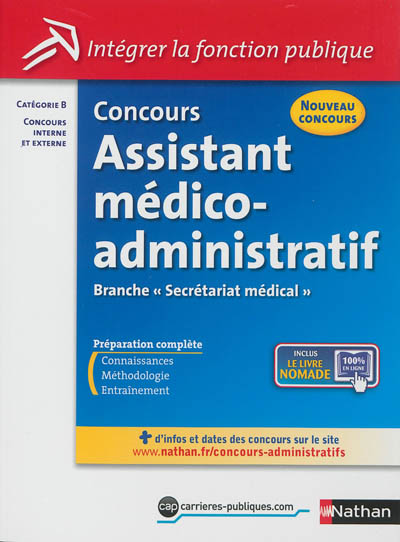 Concours assistant médico-administratif, branche secrétariat médical : catégorie B, concours interne et externe : tout-en-un écrit + oral