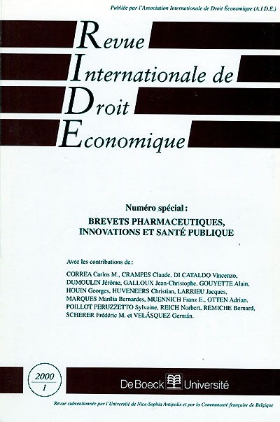 Revue internationale de droit économique, n° 1 (2000). Brevets pharmaceutiques, innovations et santé publique