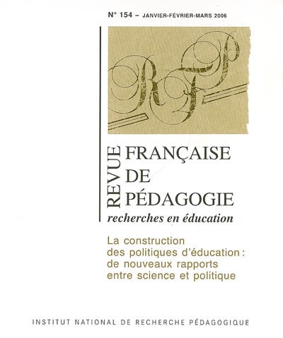 Revue française de pédagogie, n° 154. La construction des politiques d'éducation : de nouveaux rapports entre science et politique